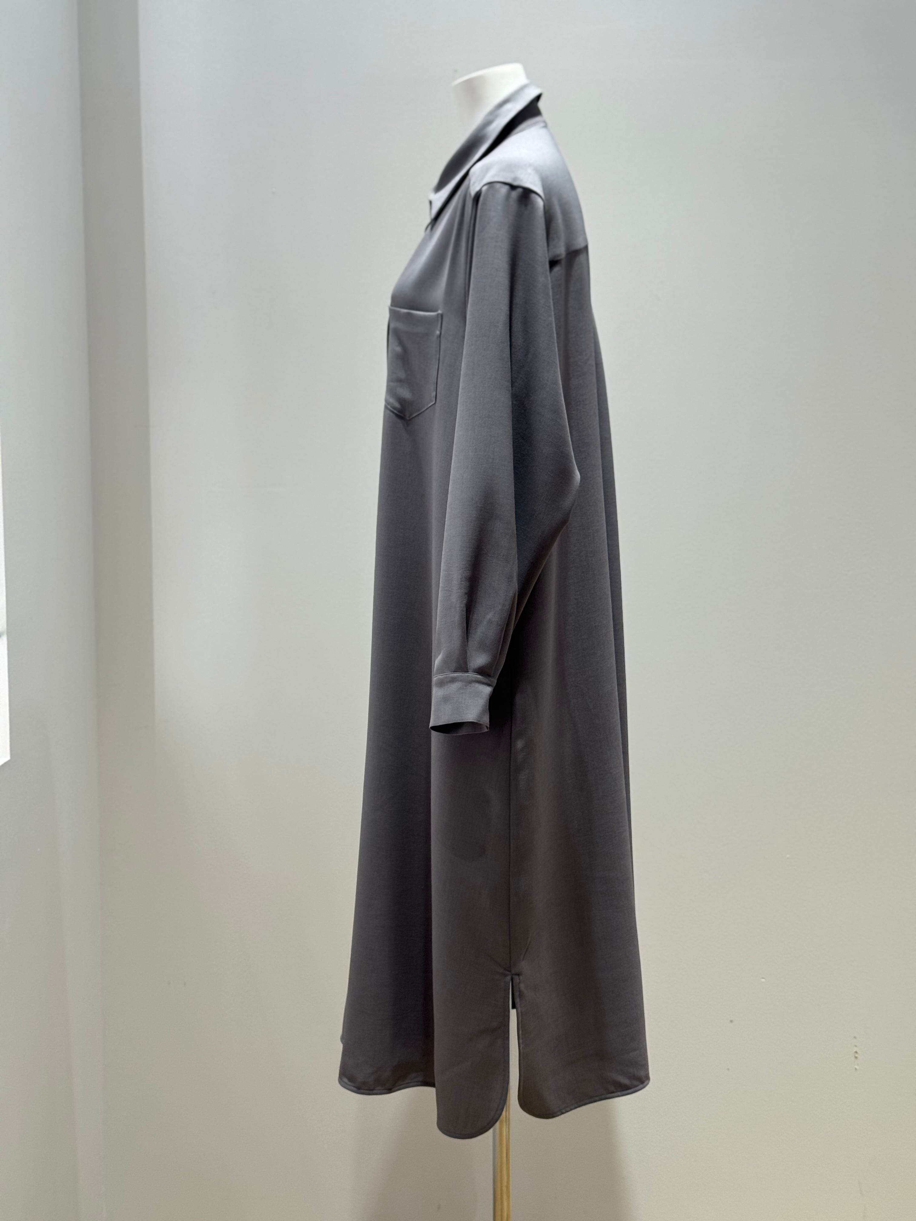 シャリ感のあるポリエステル素材を使用したビックブラウスです。ワンピースとしても着用できます。軽やかな着心地と美しいデザインが特徴で、カジュアルから特別な日まで幅広く活躍します。さらっとした生地感は、夏の暑い日にも心地よく、スタイルを引き立てます。
