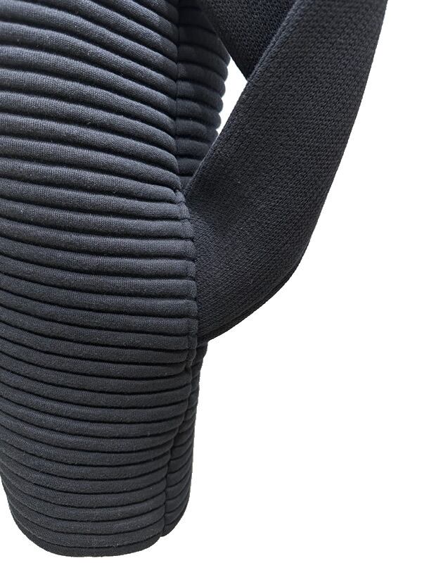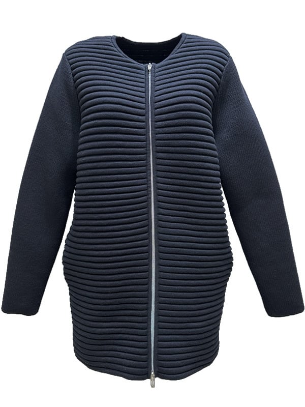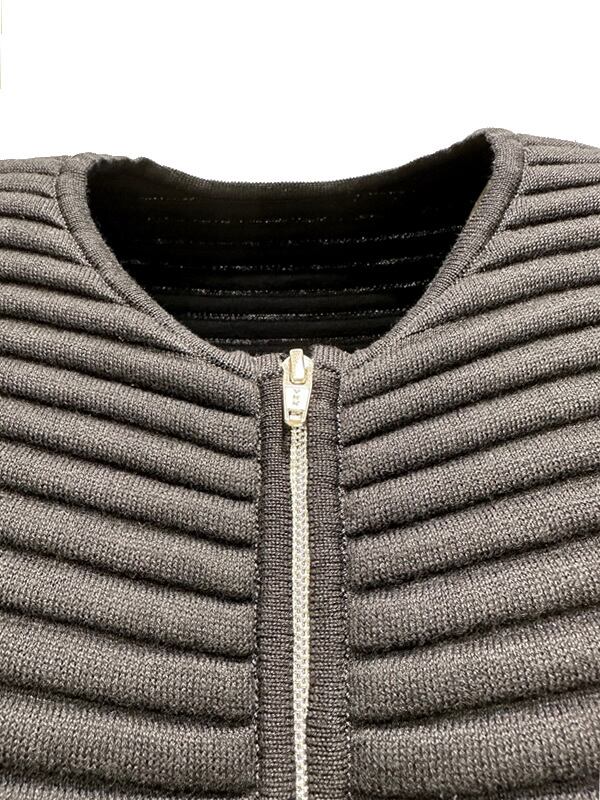 軽さと膨らみ感のあるスポンデッシュな肌触りを楽しめるクルーネックコート。全く新しいニット編み地の技法で、肌に接触する部分は綿を使用し、丁度中綿部分はポリエステル素材が配されたオリジナルの編み地を開発。スイッチシーズンの羽織に大活躍してくれるユーティリティーアイテム。