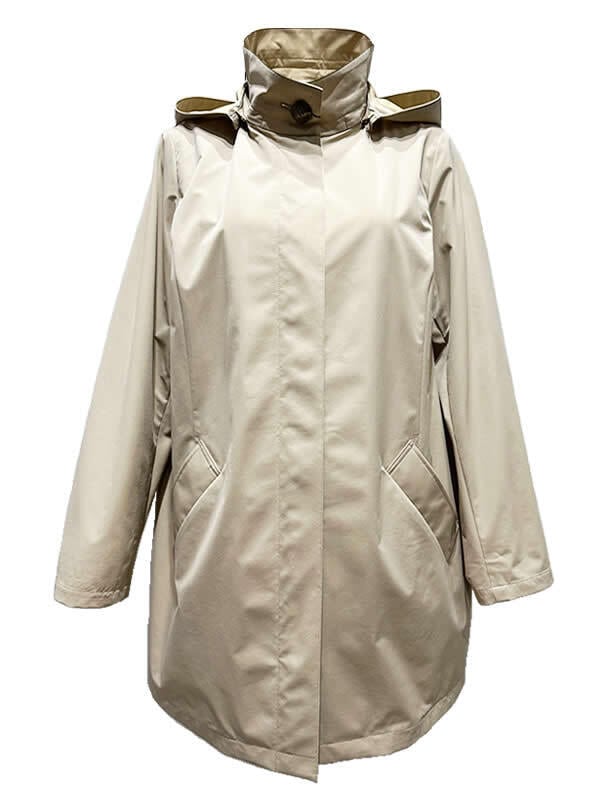 大人のデイリースタイルにぴったりな撥水ポリエステルコート。新素材の薄手転写プリントで軽くて蒸れず、肌触り滑らかでナチュラルなストレッチ素材を効かせることで、着心地の良さを追求。フード付きで、雨の日のお出掛けやレジャーやアウトドアまで活躍。