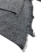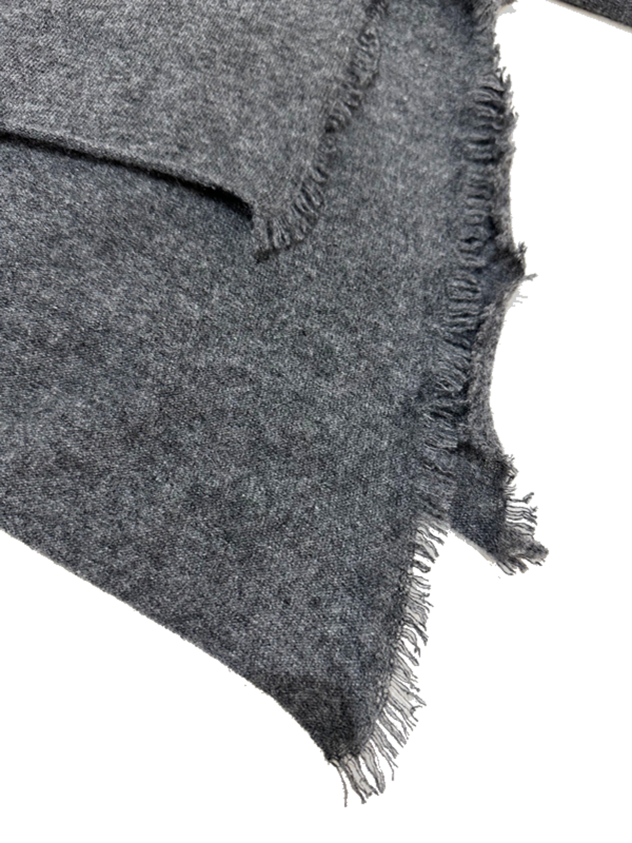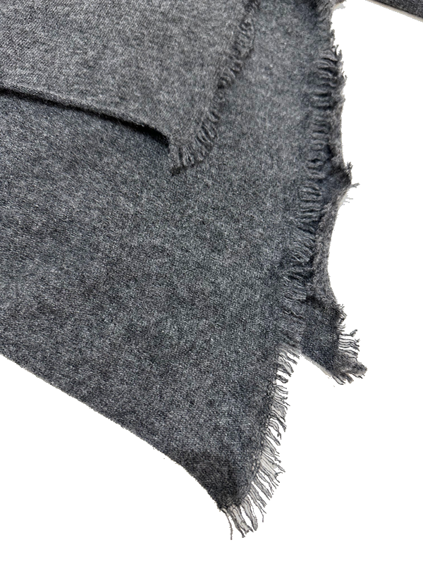 カシミヤの特徴を最大限に引き出す為、国内最古の伝統を誇る東洋紡糸の26番単糸を使用し、限りなくスローに編上げ、縮絨((しゅくじゅう)繊維に圧力をかけ、組織を結合させ厚みや強度を増やす加工)仕上げを行い、フェルト状の肉厚感があり、暖かく軽やかな仕上がりに。独特の質感がリュクスなムードを演出。一点投入するだけでコーディネートがぐっとこなれた印象になります。
