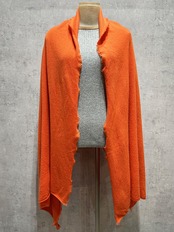 カシミヤの特徴を最大限に引き出す為、国内最古の伝統を誇る東洋紡糸の26番単糸を使用し、限りなくスローに編上げ、縮絨((しゅくじゅう)繊維に圧力をかけ、組織を結合させ厚みや強度を増やす加工)仕上げを行い、フェルト状の肉厚感があり、暖かく軽やかな仕上がりに。独特の質感がリュクスなムードを演出。一点投入するだけでコーディネートがぐっとこなれた印象になります。