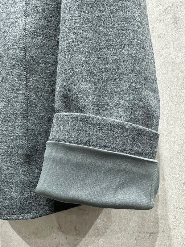 ジェームスジャージー高級糸「SUPER100原料72番双糸」を使用したクルーネックジャケット。ハイゲージで編んだ天竺組織をさらに圧縮し、ミルド加工を施すことで保温性を高め、まるでウールフランネルのように温かみのある仕上がりに。TPS(TwinPloverSeam縫い代のない縫製)により高級感があり、カーディガンを羽織る感覚で軽い着心地が魅力。フロントのコロンとした丸ボタンがポイントに。単品での着回し力はもちろん、シリーズのパンツとセットで持っていると、ビジネスやあらゆるシーンに活躍してくれるのでおすすめです。
