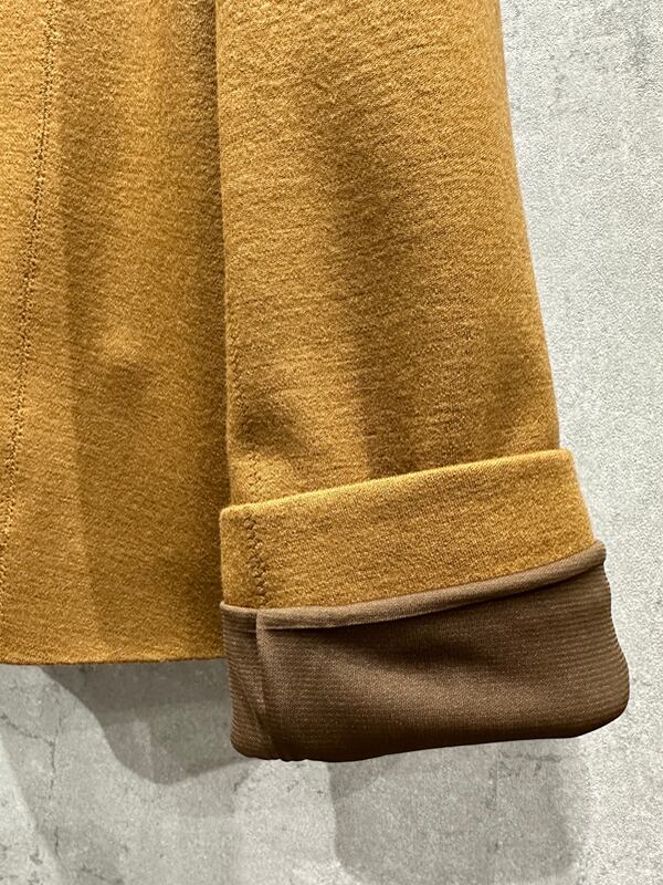 ジェームスジャージー高級糸「SUPER100原料72番双糸」を使用したクルーネックジャケット。ハイゲージで編んだ天竺組織をさらに圧縮し、ミルド加工を施すことで保温性を高め、まるでウールフランネルのように温かみのある仕上がりに。TPS(TwinPloverSeam縫い代のない縫製)により高級感があり、カーディガンを羽織る感覚で軽い着心地が魅力。フロントのコロンとした丸ボタンがポイントに。単品での着回し力はもちろん、シリーズのパンツとセットで持っていると、ビジネスやあらゆるシーンに活躍してくれるのでおすすめです。