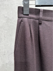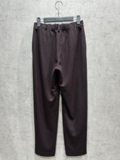 ジェームスジャージー高級糸「SUPER100原料72番双糸」を使用したストレートパンツ。ハイゲージで編んだ天竺組織をさらに圧縮し、ミルド加工を施すことで保温性を高め、まるでウールフランネルのように温かみのある仕上がりに。股上を深めにとり、ウエスト後ろゴム仕様、タックデザインで安心の履き心地を実現。シンプルなデザインで合わせるものを選ばない定番パンツは今期のマストアイテムになってくれるはず。シリーズのジャケットとセットアップもオススメです。