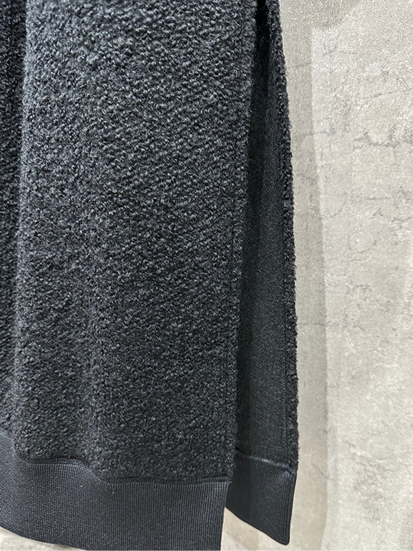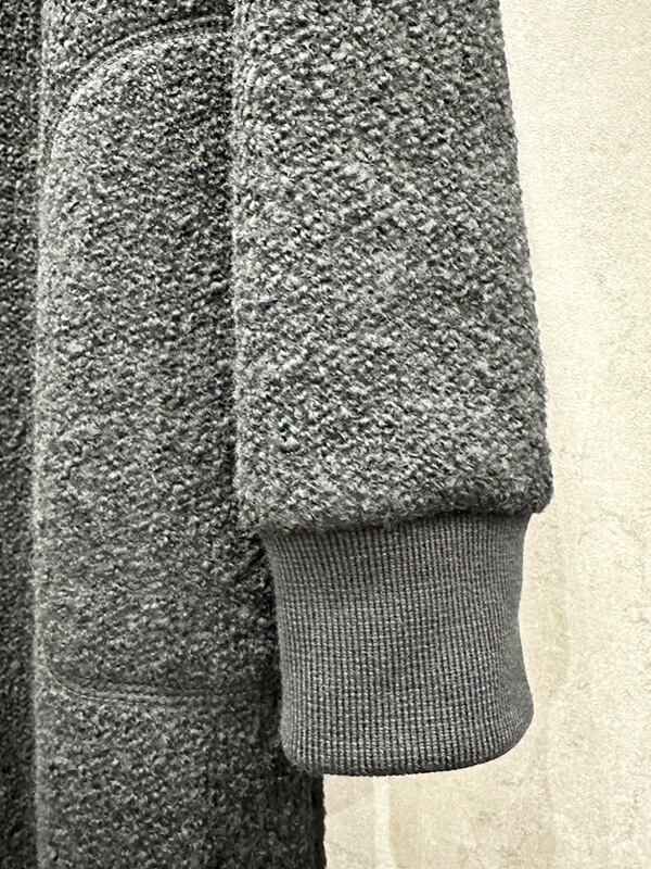凹凸のあるリングツイードとゴム編みニットで温かみのある素材を使用したロングパーカーコート。深めにあしらったサイドスリットでぬけ感があり、ワイドボトムスとも好相性。裾切り替え部分にTPS(TwinPloverSeam縫い代のない縫製)を使用し、高級感と軽さに拘ったアイテム。ラフな大人カジュアルスタイルにぴったりな逸品。