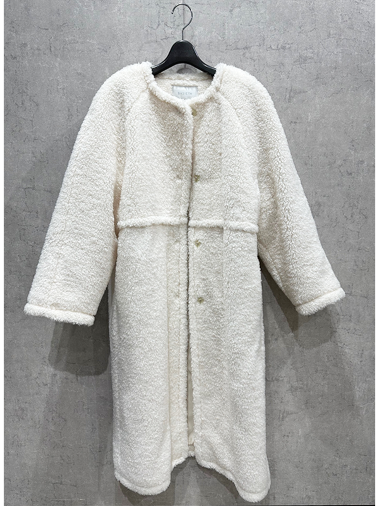 モコモコのテディ生地でシーズンムードを盛り上げてくれるコート。シープ調のエコファー素材で、肌触りの良さやパイル形状の変化の少なさ、毛羽付着の少なさなどが特徴。クルーネックデザインでインナーレイヤードしやすく、ラグランスリーブによることで、アームホールがゆったりし、着心地の良さも◎。ラフなスタイルにはもちろん、スポーティーなスウェットの上にパッと羽織ってみたり、又はワンピースに合わせて女性らしく着こなすのも◎。どんなスタイリングにもプラスできるデザインなので、デイリーからタウンユースまで幅広いスタイリングに大活躍。